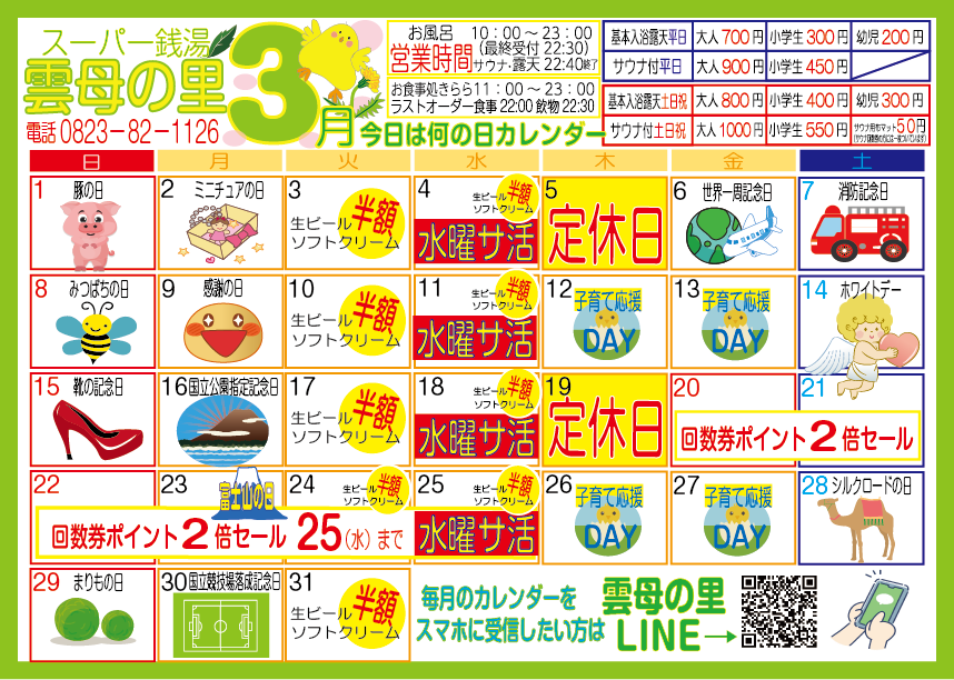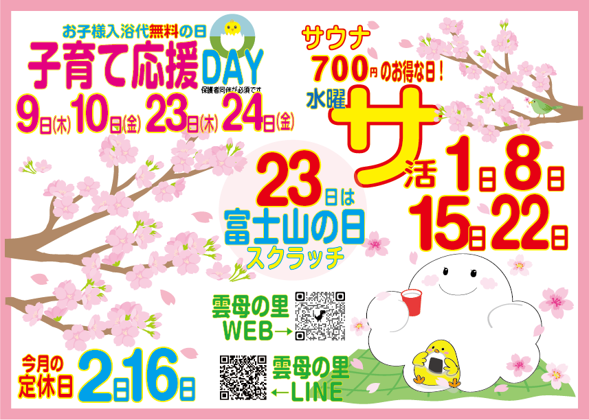 ★工事点検等により、営業時間変更や休館になる場合がございます。